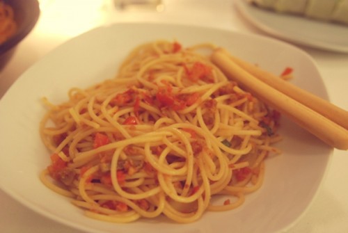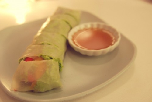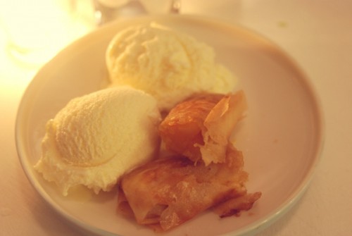 for starters, we got the crab and mango roll with honey fish sauce. we then had the aligue pasta (crab fat, baby!) and the vigan longganisa pasta. the meal was topped off with a serving of mango turon with vanilla ice cream, and refreshing glasses of good ol’ calamansi juice.