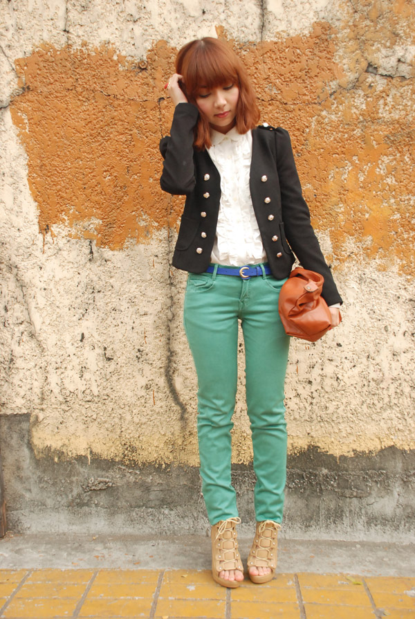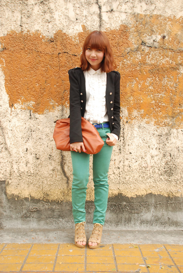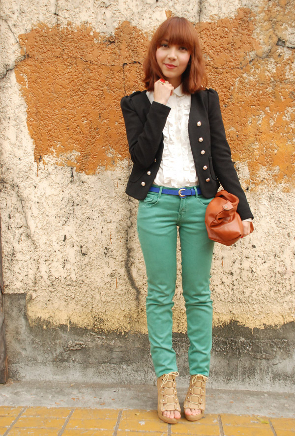 i am so in love with these jeans! i’ve always wanted a green pair (as well as a bright cherry red, which i also recently got!), so i am incredibly ecstatic to wear them. and oh, they are also one of the first birthday presents i received this year. happy times! (: