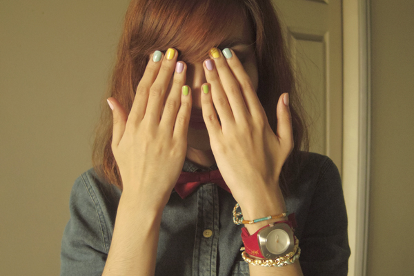 i got the quickest mani/pedi service during one of my lunch breaks at a new nail salon near where i work. i love the results! kinda wanted them to be a little more pastel, but they didn’t have more nail polish options so i settled for these ones. still pretty great, methinks. (: