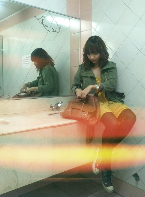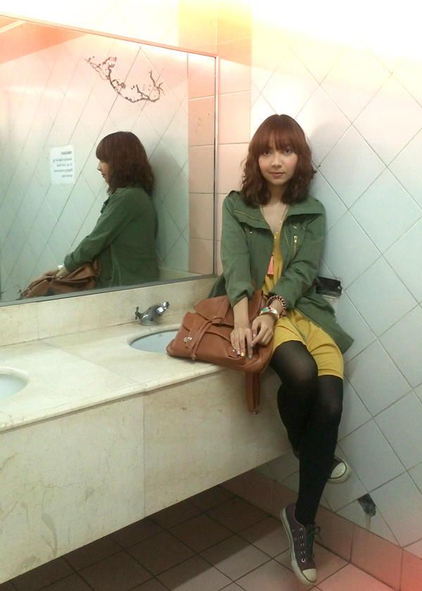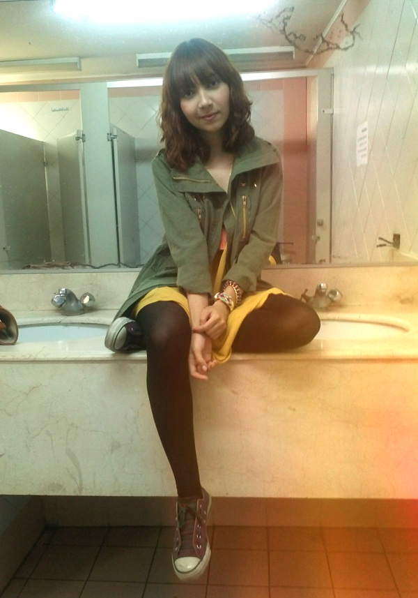 i wish these pictures came with an interesting story; like how i had just finished watching the most amazing concert of some indie band with kickass tickets i magically scored through people whose names i cannot publicly say and enjoyed it so much that i was still dizzy from my heart pounding all night and the constant ringing in my ears but it isn’t bad at all because i had the time of my life so i stumbled into a public bathroom to regroup and found myself sitting on the sink to catch my breath and that was when my concert buddy volunteered to take pictures of me and my outfit and i knew i would love them no matter how silly or lame or gross they looked because, after all, i just had the time of my life.