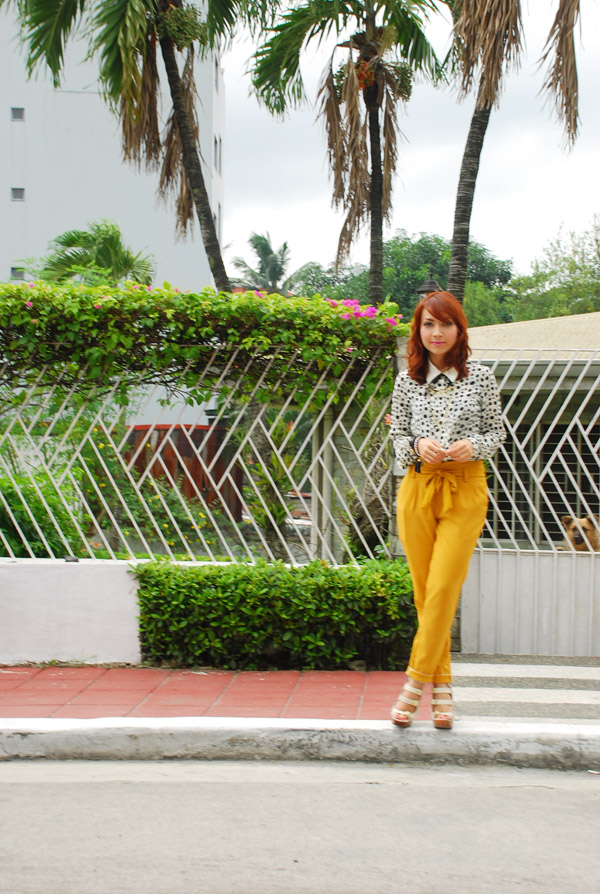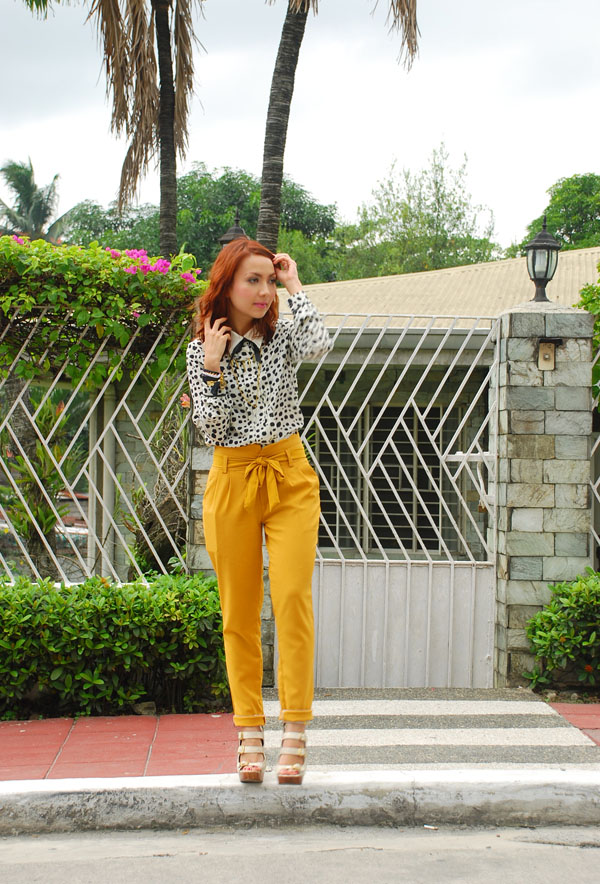 Amazing! I love the hue of the trousers against the pattern of your top. And that phone case is pretty cool too! 😀