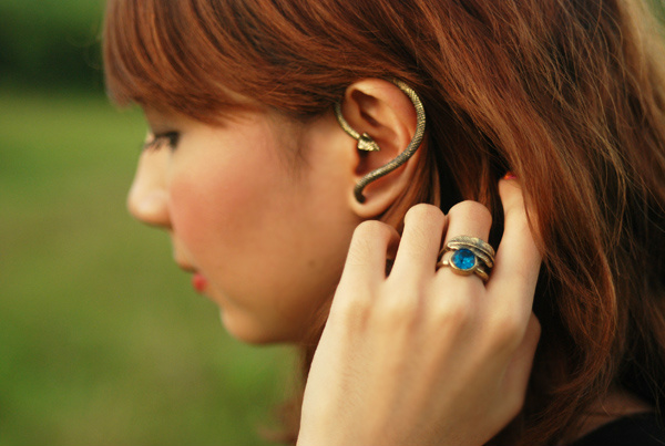 ring, earring – c/o gurly glam