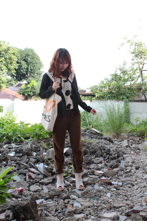 i recently got to shoot paul’s outfit at this abandoned lot near our office building, and i thought it was kind of nice. well, not at first glance obviously, but i knew it had the potential to be a really cool background for outfit photos. so i trotted along one afternoon break – officemate in tow – and took on the little mountains of rocks and ruble. have any of you tried this, in 4-inch wedges? it’s an absolute nightmare. i wobbled through the whole thing and every pose i did was as awkward as the last.