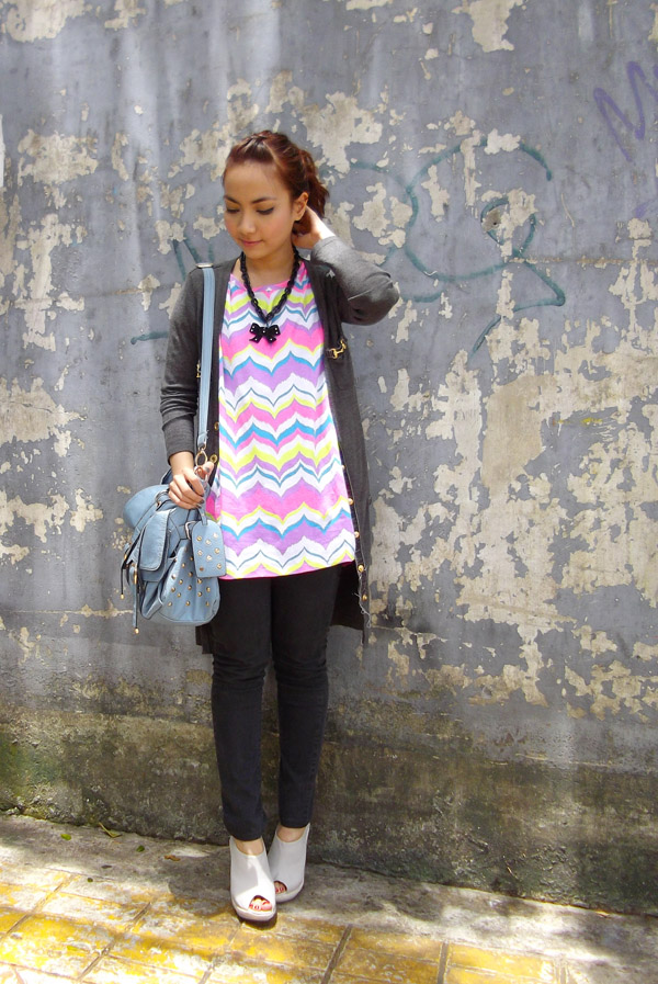this has been my work uniform as of late: some kind of top, some kind of pants, some kind of outerwear. it tends to be a little boring so i like being able to include pieces that have something special to them — like the yummy neon-ness of this top from SMOOCH.