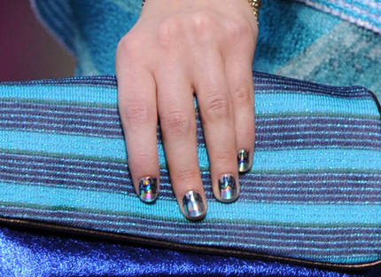 i am certain these clothes speak for themselves. they are by MISSONI, and they are all sorts of awesome. their choice to go with chrome nails (both plain and patterned) was a good call, i think, as it complements missoni’s signature statement prints and color-coded looks brilliantly.
