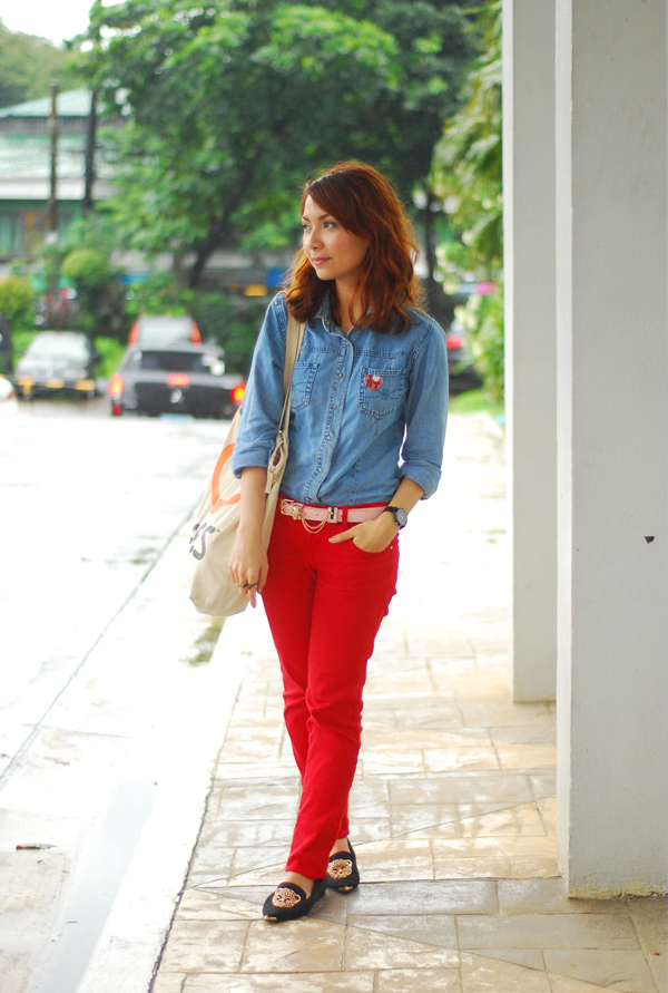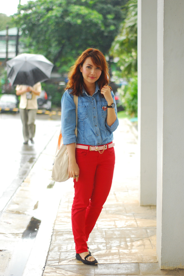 Ooh!! I posted something suuuper similar like this in my blog weeks ago!! ♥ Denim and red jeans over here http://www.arnievillanueva.com/2012/08/sunshine-after-days.html. I LOVE IT! Haha so pretty, Bestie! xx