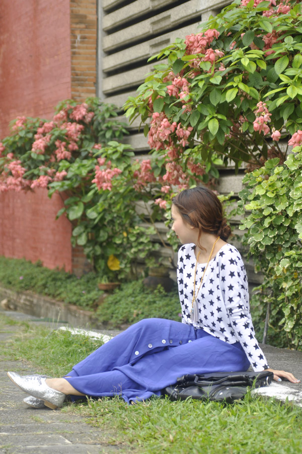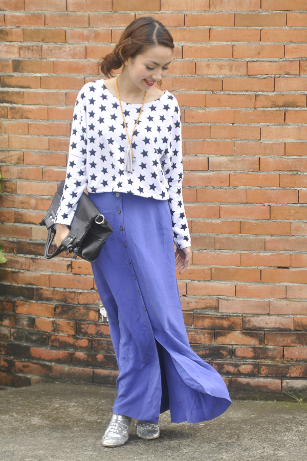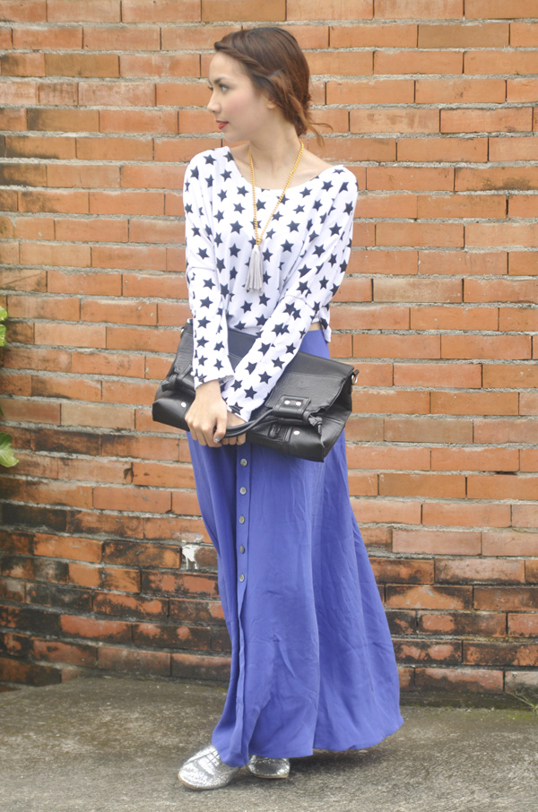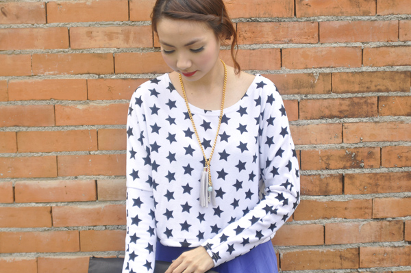i used to have an old star-print croptop just like this one, but its colors reversed. it had been a favorite piece of mine until i sold it during the last bloggers united bazaar. i was honestly okay with it; i thought i had worn it more than enough – on and off the blog – and wouldn’t really miss it. turns out i was wrong. for weeks i found myself “craving” for that exact top: perfectly cropped and slouchy with stars just smattered all over. so when i saw this white version during a quick thrift shop visit, i HAD to get it.