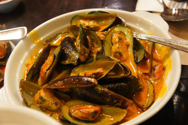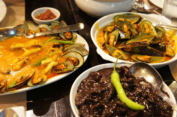 we ordered seafood kare-kare, crispy dinuguan and spicy tahong, (which explains the peculiar abundance of mussels on the table) and more cups of rice than i could count. the crispy dinuguan was the table favorite; but truthfully, each dish had its own undeniable yumminess that left each of us in utter, utter bliss.