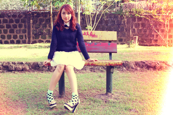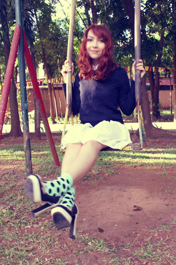 I love the effects in your photos! Like light leaks in different direction. Cooool. Anw, love the outfit. Esp the socks! Eye catching and quirky. 🙂
