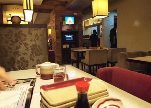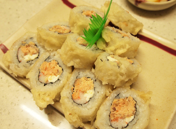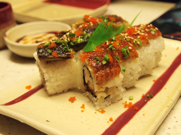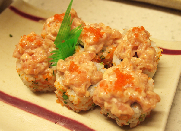 on the table: deep blue sea, american dream, jurassic maki, dynamite roll, tuna sashimi, and what’s left of the pork shogayaki we devoured in less than 3 minutes. oishii!