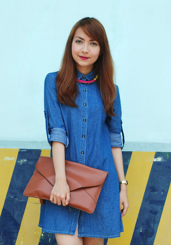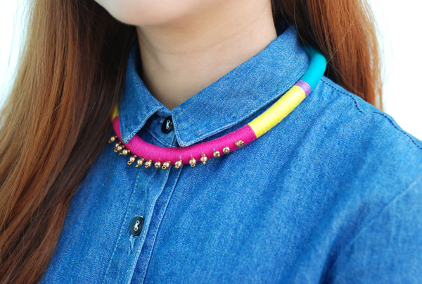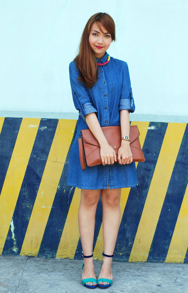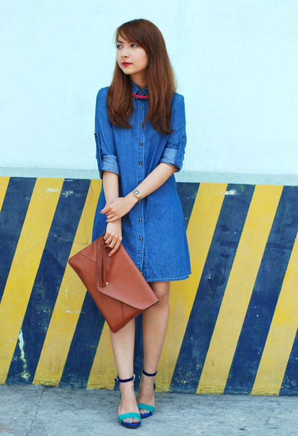 i’ve always been drawn to colors, and the hot season is making it all the more tempting to dress in head-to-toe brights. thankfully i’ve been able to practice some bit of self-restraint and usually only limit myself to little details when injecting color into my looks. the combination of denim + candy brights has always been a favorite of mine; i find it to be both fun and tasteful, and something that can be played around with to almost no limit. here i paired a simple denim dress with my two new favorite accessories for summer: a color-blocked necklace from paradiser accessories (win your own piece in my giveaway!) and some gorgeous, comfy heels from ferretti. i think this will be my uniform for the season.
