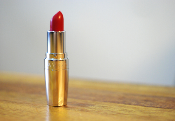 i’ve acquired a little over a dozen red lipticks in the last couple of years (it’s ironic, really, since i rarely ever wear the color) and this is the latest addition: a darling shade called “make out red” from the avon totally kissable line. it glides on really smooth and leaves a comfortable, creamy feeling on the lips, which i love for the hot weather. plus its pinkish-red hue is incredibly flattering on, and stands out in my still-growing arsenal of red lippies.