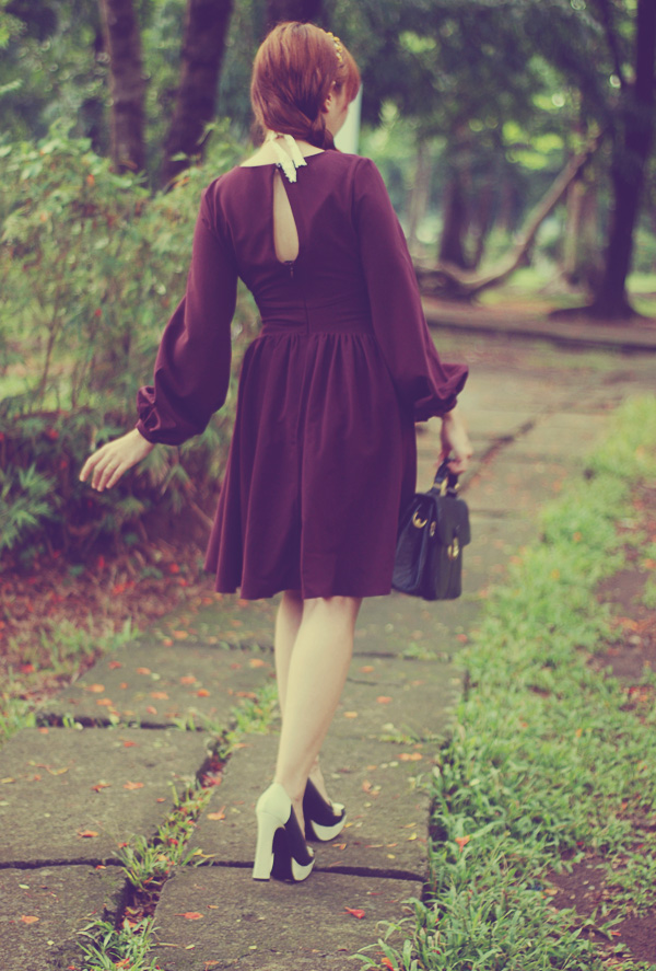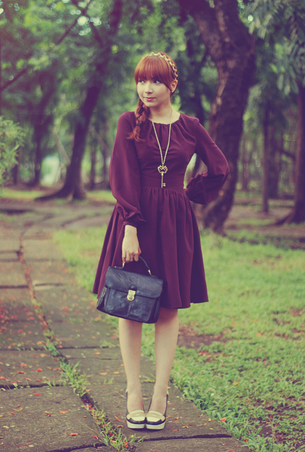 i often say that my personal style has no specific parameters and thus, constantly changes and evolves (read: fickle). i suppose i’ve always enjoyed the “dressing up” aspect of fashion — a day-to-day kind of game one enjoys peacefully in the comfort of her full-length mirror or, audaciously, out in the world. it still holds true to this day: i can go from preppy to bohemian to edgy virtually at the drop of a hat. but recently i’ve come to find that certain looks – or outfit pairings – get favored more than others. a dress-and-necklace combination, for example, or a clutch-and-heels pairing that i like tend to get used over and over again, typically with variations in other elements included in the look. when i was looking at these photos i noticed that this particular handbag gets paired with these loafer heels frequently (see here and here) even off the blog. this little discovery is a happy one for me; i always thought i would wander aimlessly in the world of personal style, but perhaps there is a part of me that has discovered some true loves in the realm of fashion. i still enjoy trying new things, of course, but having some bit of constant is not a bad thing, either.