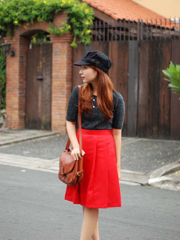 top, skirt, bag – thrifted