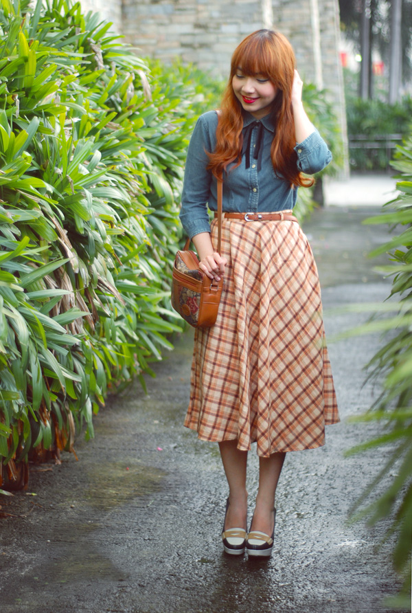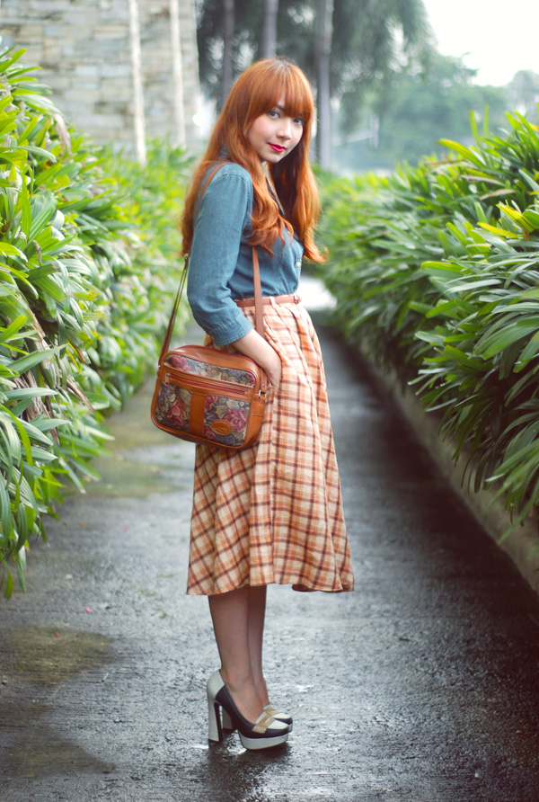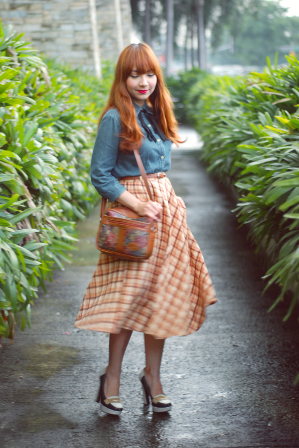 when i bought this skirt i remember falling in love with its colors, and now that i am looking at these photos i realize it may have well been because they match my hair quite wonderfully. i am not so vain or self-involved as to require material possessions to compliment my features — real or otherwise — but i do believe it helps my day-to-day personal aesthetic to see such things aligning nicely..