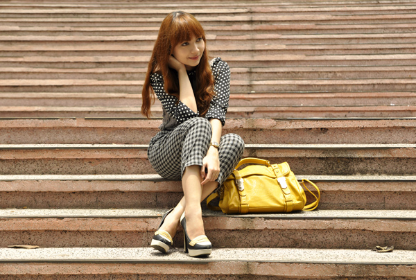 as i have mentioned a few dozen times on the blog, i am a big fan of layered outfits and general “cool weather dressing”. but we all know this is a tricky feat in our tropical climate and can be quite a struggle when one longs for layered ensembles during particularly hot days. that is why i am thankful for the invention of shirts like the one i am wearing, which combines the polished look of a button-down and easy comfort of a knit vest. it is adorably preppy and sweet on and i am ecstatic about not having to torture myself in the process.