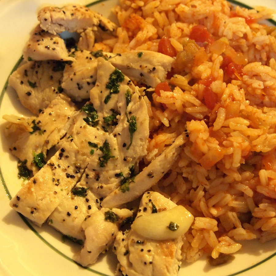 if you follow me on twitter you may have noticed a significant increase in my food-related blurbs these last couple of weeks. and on my instagram i recently posted the photo below, captioned “whipped up some dinner! spanish rice w cilantro chicken #nom” (i’m social-media-savvy like that):