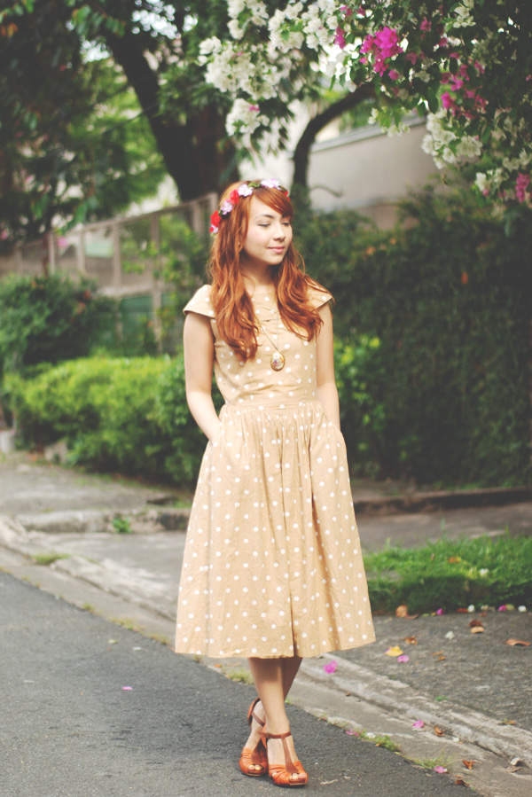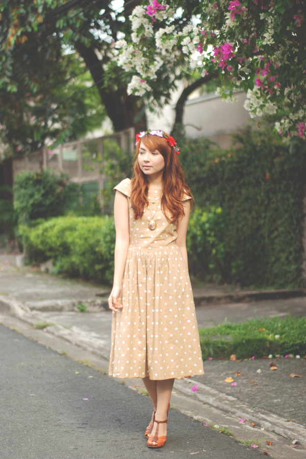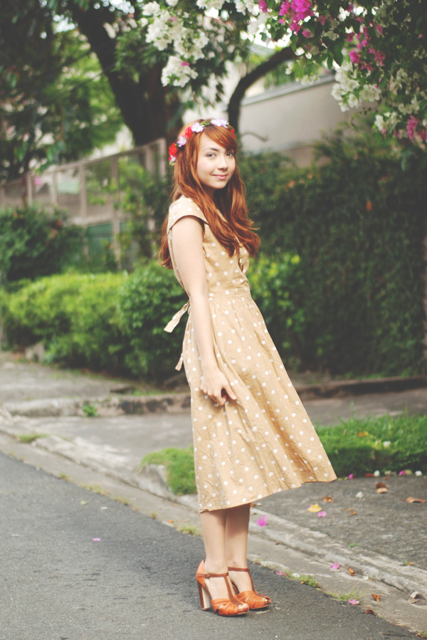 50’s or 50’s-looking dresses come by quite rarely in our local market, making my obsession with them a rather frustrating dilemma. i frequently find myself lurking around foreign vintage blogs and online shops with envious eyes, constantly wishing i had access to estate sales, flea markets and thrift stores that provide an almost limitless supply of such lovely things from the past. occasionally though i do come across some pieces reminiscent of the stylish era, and it’s almost always a no brainer for me. i snatch it up (size and fit be damned) and feel like a million bucks every time i wear it. it’s nice to feel like betty draper for a day — if only unproperly coiffed and without a cigarette eternally glued to my hand.