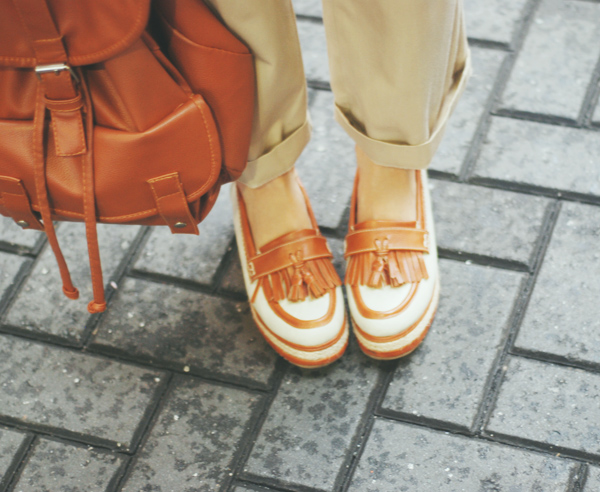 i am a huge fan of loafer shoes and practically wore my favorite pair to death. since i’ve stopped using them (i’m afraid they would fall apart as i am crossing the street or something) i’ve been on the hunt for the perfect new pair. these loafer flatforms were a random thrift find and i felt a hallelujah moment when i saw them. i haven’t bought secondhand shoes in a fairly long time but i must say, this was a fantastic way of rekindling that old love.