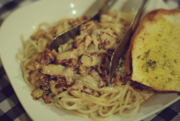 for last week’s date night, john and i made our way to maginhawa st., QC and finally got to try their little italian joint famous for its pizzas. we got pizza margherita (i’d been craving for days!) and spaghetti carbonara from FRIULI TRATTORIA, the former of which turning out absolutely heavenly. we didn’t like the pasta too much though, it being waaay too sweet, but finished the good-for-two platter anyway since we were both famished.