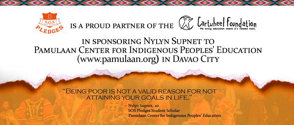 SOS PLEDGES, The School of Satchel’s community service program, is a proud partner of the Cartwheel Foundation, Inc., a non-profit organization that seeks to give indigenous communities a future through quality and culturally relevant education. It sees a nation where indigenous Filipino people can exercise their right to have quality education and active participation in community life.