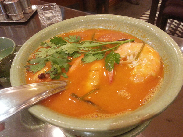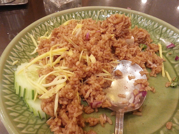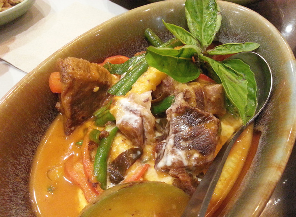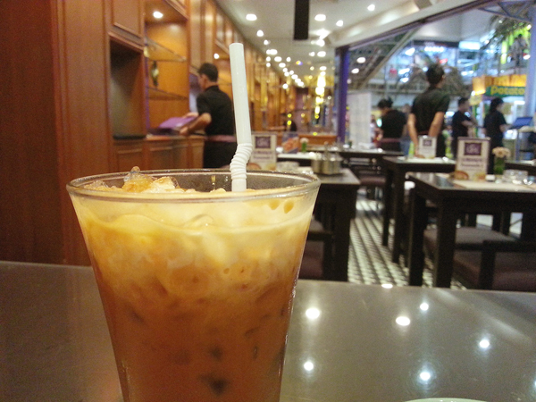 john and i dined at their greenhills branch one rainy day, when we were both famished and craving for some good food. i just recently got him hooked on thai food (he never even tried it before we met!) so we were both looking forward to a new discovery. we ordered the tom yam gung, beef in red curry, and bagoong rice. the soup was quite tasty and lovingly enjoyed by us both, but the two other dishes were just blah. worst of all, both the beef and the pork in the rice were too tough to chew, making our whole dining experience more stressful than pleasurable. even the thai iced tea was a bit of a letdown.