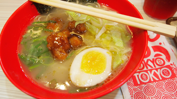 recently i got invited to try out tokyo tokyo‘s version of the ramen, so i made my way to their ramen bar in trinoma and got my fill of the three flavors they offer: braised pork, spicy chicken and tempura miso. we were served all the variants in snack-sized bowls (P99 each) but between all the noodles, eggs, meat, and maki & gyoza we ate, we all walked outta there with heavy bellies that lasted well into the next morning — for me at least.