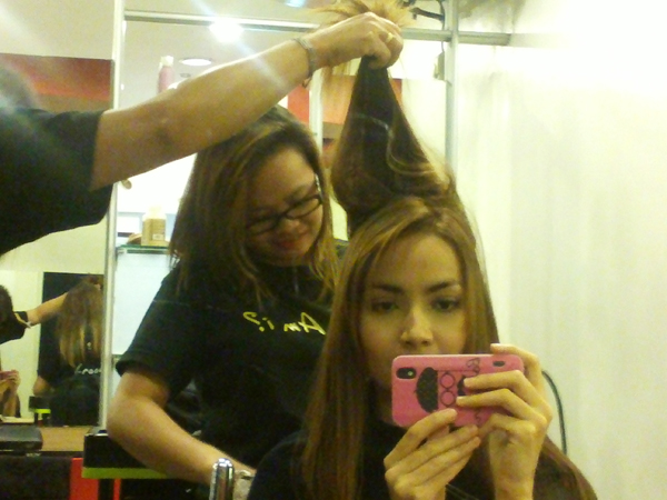 i spent much of today in the salon, getting a much-needed makeover for my tresses. i got to try azta‘s steambond procedure, a healthier sort of rehash of the traditional rebond, so i am now officially little miss straight (although i would kindly ask you not to call me that. it sounds weird). anyway these are the crappy pictures i took amid all the craziness that went on, but i promise i have better ones on hand ready to be posted with a full, blow-by-blow account of the straightening process. exciting stuff!