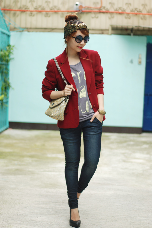 The color of your hair goes really well with the color of the blazer. Lovely! 🙂