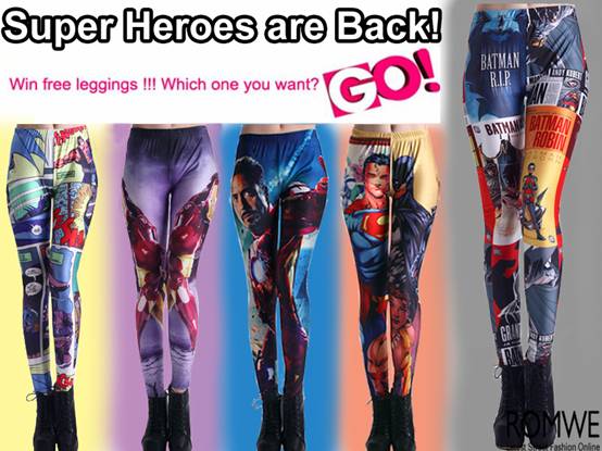 today i am partnering with ROMWE to bring you this cool new giveaway. TWO of you will each win a pair of superhero leggings (they have loads of other awesome designs for sale, too!) and all you have to do is: