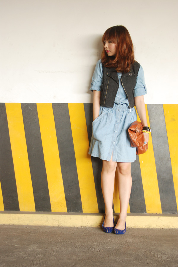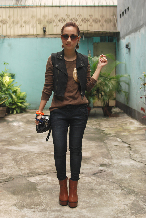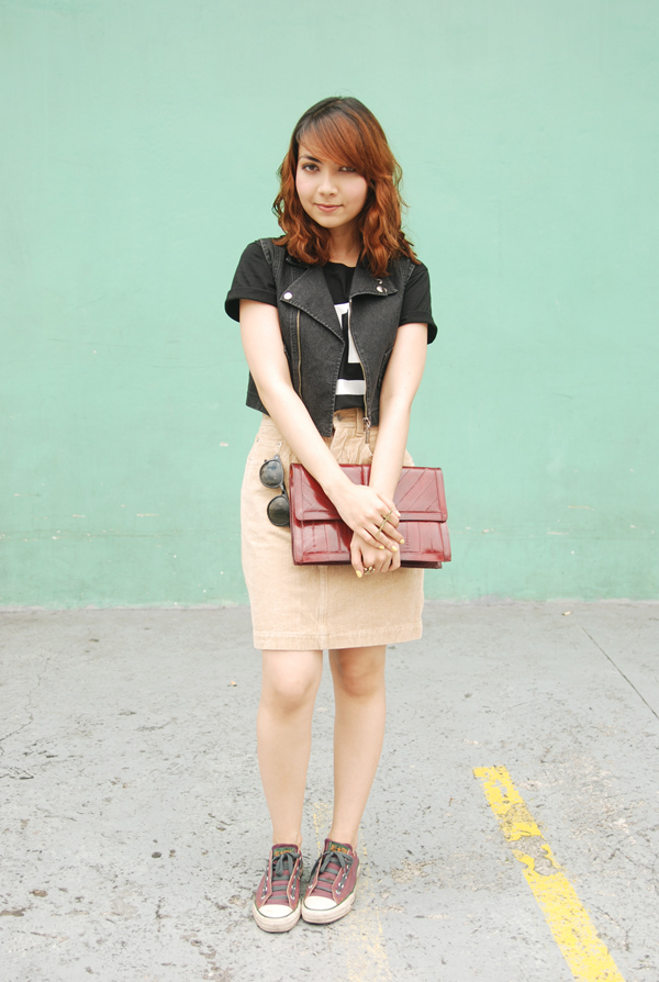 items of clothing that fall under the “moto” category come in a variety of shapes and sizes, as well as a multitude of materials. for our tropical climes i find it most practical to go for denim rather than leather — real or faux — as it is generally more wearable no matter the temperatures. this little cropped beauty is a thrift find and has been in my possession for little over a year. i have worn it endlessly, especially off the blog, as it adds just the right amount of spunk to any kind of outfit. i love, too, how it alters the look of even the simplest of t-shirts, practically doubling my wardrobe in the process.