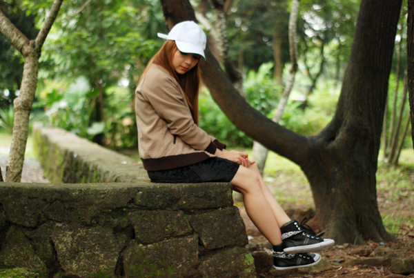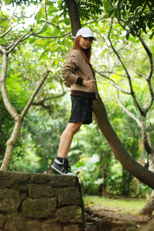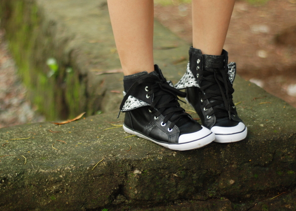 sometimes i still surprise myself with the ways in which i come up with day-to-day looks. this outfit, for example, came about with the simple desire to wear my new hi-cut sneakers. i took random pieces (one of which is currently for sale in the shop) to go with the shoes and ended up with this strange hybrid of an outfit, the likes of which rarely appear on the blog. when i am out of my comfort zone in such instances i find it best to compensate with things that are familiar to me, like venturing into a wooded area to take photos in seclusion. in this case john was with me, and between all the laughing and messing around, i forgot was even on unfamiliar territory…