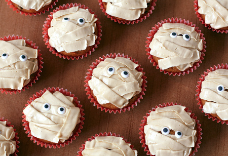 so today’s food post is dedicated to our well-loved cupcake, but reincarnated in cute little halloween flavors and designs. the photos are from here, which links to their respective recipes, and the video is by one of my favorite youtube cooking channels SORTED. awoooo!