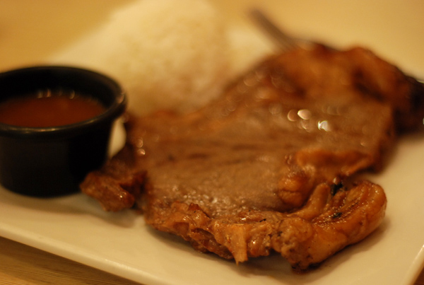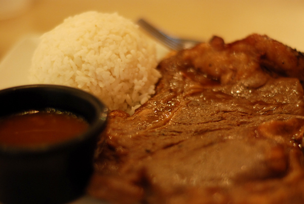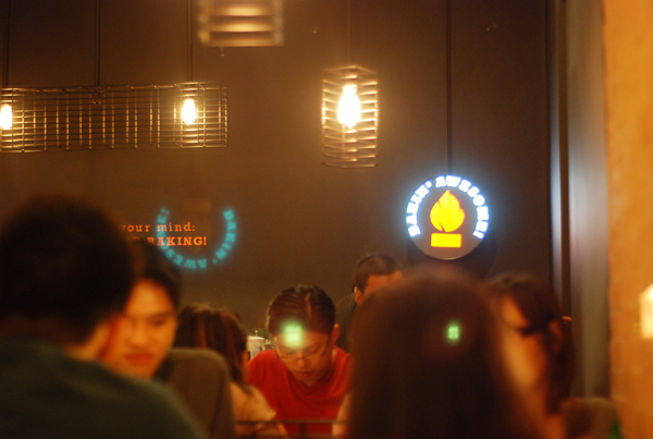 BRICKFIRE looks quite posh from the outside, and its interiors are no different. the design is gorgeous and exudes that kind of je ne sais quoi ambience that is both comforting and alluring. we were surprised then, to find the menu to be less-than-impressive and seemingly inadequate in both presentation and selection. still, we pushed forward: i ordered cowgirl annie (P149 for 200g), their version of the t-bone steak which comes with rice and gravy, while john went for sisig ala adobo (P160), also with rice, since he had a major craving for some filipino food.