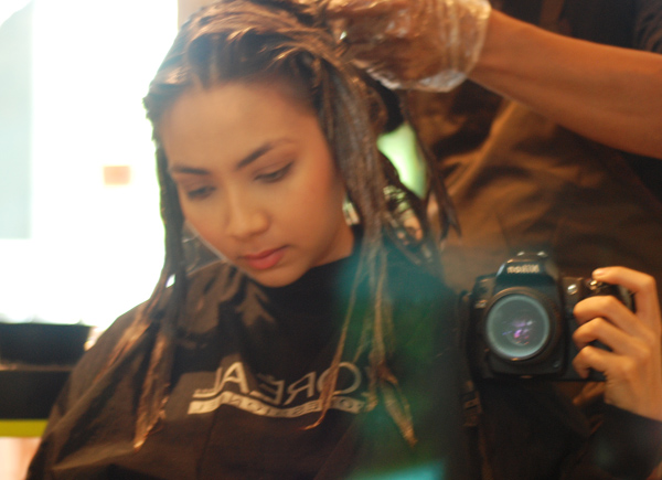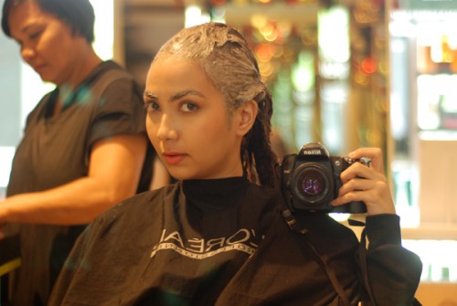 then he customized a hair dye for me, using a combination of ash and golden hues to achieve a brighter dye that wasn’t too orange. we used INOA by l’oreal, an odorless, ammonia-free line of hair color that promises hydration and protection so the hair doesn’t suffer like it normally does with dyeing. i really got excited with inoa because my hair is badly damaged from years of chemical treatments and only recently started getting some TLC from me (i know, i’m sorry!).