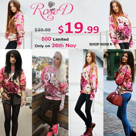 1. this “rose D” sweatshirt, one of the shop’s own designs, has been a total hit (it’s really very pretty!) and now romwe is stepping up their game. you can purchase your own piece at an amazing discounted price on november 26, plus an extra coupon 10%offrosed to make the deal even sweeter. or hey, why not win one for free by joining their giveaway HERE?