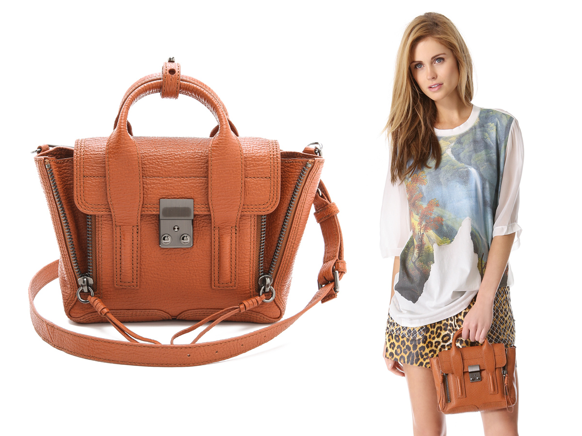 while shopbop is mostly out of my price range, i still like browsing it from time to time to see what designers are coming up with and what sort of things i can expect to hit mainstream stores soon (plus sometimes i just like to drool over things i can’t afford). my recent addiction has been the shrunken bag — aka typically a minuscule version of a brand’s existing bag design. it is a trend that, admittedly, took a while for me to like since the whole concept seemed all too ridiculous/insane (“who would spend $300 on THAT?” was my basic thought process). but seeing a myriad variations in such cute styles and more colors than i can count has turned me into a mini bag believer.