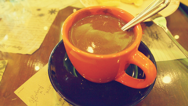 our spread included mushroom pasta, amatriciana pasta (their version of the classic meatball spaghetti) and scampi pasta, which was my order, and tasted absolutely heavenly. we ended our meal with an order each of the tsoknut hot chocolate (served a little too thick and sweet, so we had ours watered down to a more drinkable state) and a warmed-up cheese roll that we all shared.