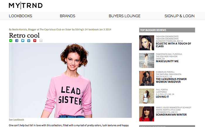 i am at it again with another review on MY|TRND, this time featuring sister by sibling‘s SS 2014 collection. it is a true delight to look at and, i imagine, an exciting set of clothes to wear. you can check out my wee review here and view the full collection here.