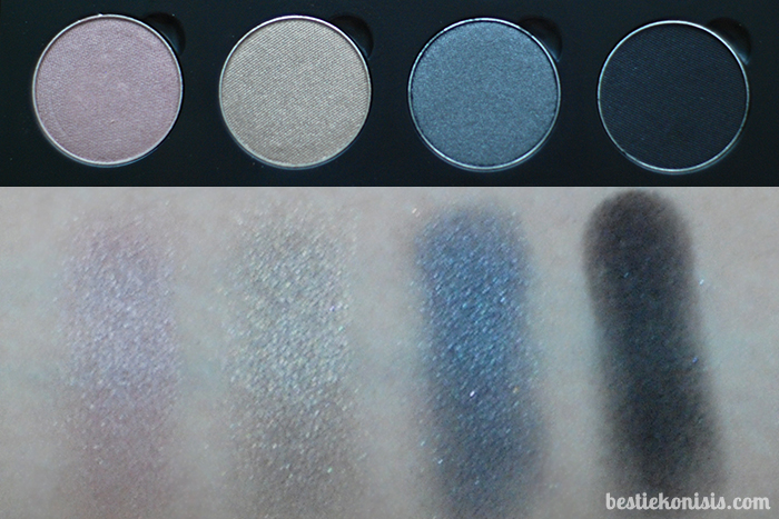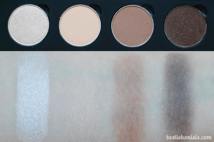 so i just popped my eyeshadows into the magnetized palette (it’s the easiest thing, really) and arranged them the most sensible way i could. as you can see there’s still space for four more eyeshadows, so i am definitely filling that up soon! below are some swatches of the colors that i currently own. honestly the photos are quite crappy as the light would not cooperate with me during time of swatch, so i suggest you also check out their photos on the website.