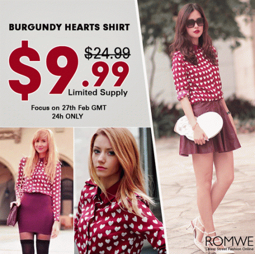 here is another exciting giveaway from ROMWE! get the chance to win the sweetest heart-print shirt by following these two easy steps: