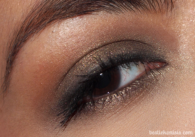 lately i’ve been sporting this olive-toned smokey eye and really loving it (the boyf has complimented it, too!) so i thought i’d share a mini tutorial on it. the main color i am using is not green per se, but a brown with lots of gold shimmer, which lends it an olive sheen that is really, really pretty. it is an easy-to-follow look and a great alternative to the usual gray or bronze smokey eye, and can be taken up or down a notch with your own tweaking.