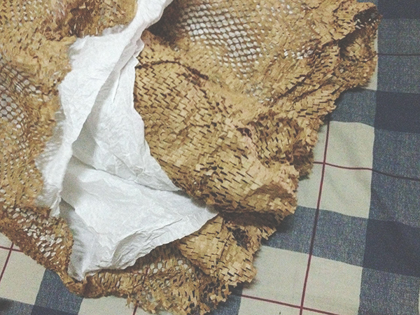 inside were two bundles tightly packed with their wrapping paper. i had previously watched a cherry culture unboxing on youtube so the bizarre-looking packaging did not surprise me; however the experience of unraveling all that paper still bordered on comical.