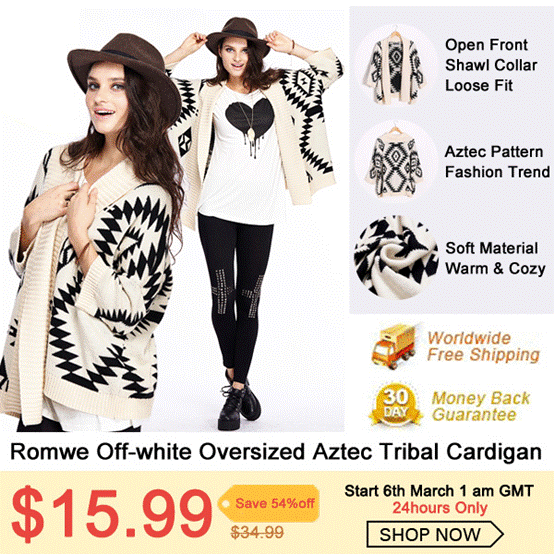 ROMWE is on a roll! we have partnered once again to bring you this new giveaway, featuring their super cute, super cozy aztec-print cardigan. seriously, look at that beauty!