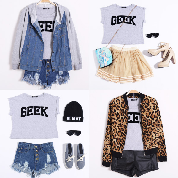 hey guys! just popping in real quick to let you know about another awesome sale by ROMWE, this time for their supercute “GEEK” tee! this statement shirt was all the rage last year but it’s the kind of thing that doesn’t get old, imo! and as you can see, there’s about a myriad ways one can style this darling piece — a total must-have. 😉