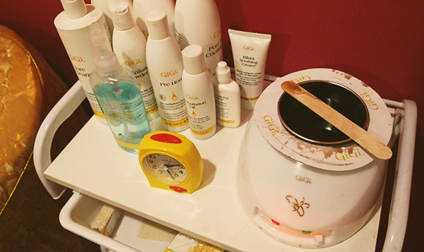 we started with the leg wax and i was shown the brand of wax the salon uses (gigi). i was told it was a trusted name in the field and soon enough i found out why: the wax really gets every strand of hair out and leaves the skin super smooth. i really enjoyed this service and plan to get all my future leg waxes here!