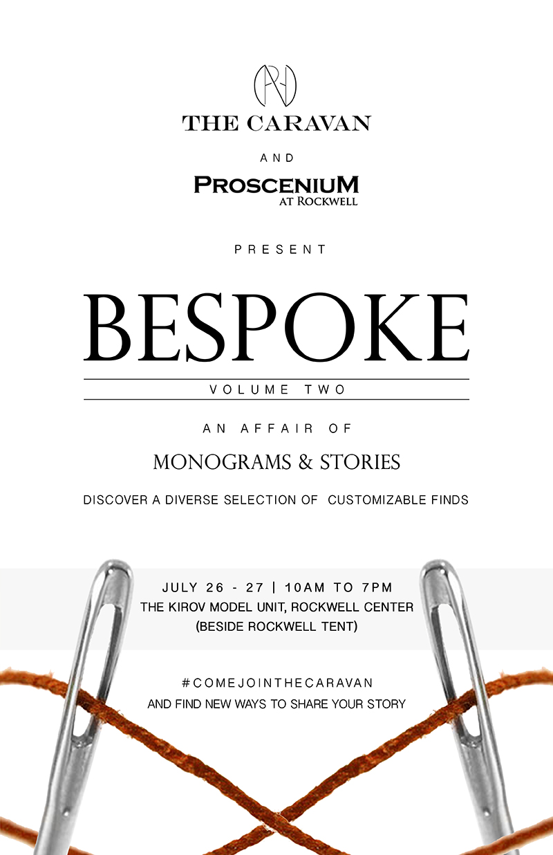 follow the tale of the thread and find something just for you with the second installment of The Caravan: Bespoke, An Affair of Monograms and Stories. discover a diverse selection of customizable finds on july 26 to 27, 10 AM to 7 PM at the kirov model unit (beside the rockwell tent), rockwell center, makati.