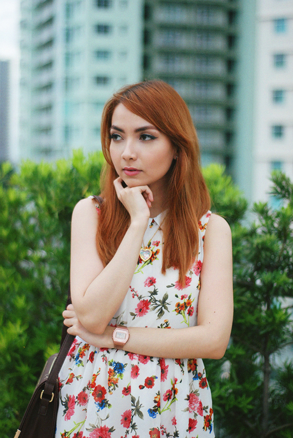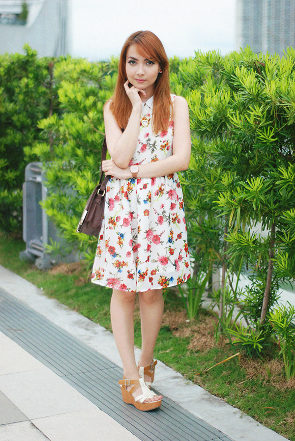just a day after waxing poetic about dreaming of cooler weather — and dressing the part! — here i am in a floral sleeveless dress. i know the look is quite telling of warmer seasons, with which we filipinos are more than familiar, but these days i only dress the bare minimum on the occasional sunny day. i do absolutely love all this rain we’ve been having (as i write this it is pouring hard outside), however i can’t help but feel excited seeing some clear skies and feeling warm air against my skin, particularly on date days when john and i love to just walk around outside…