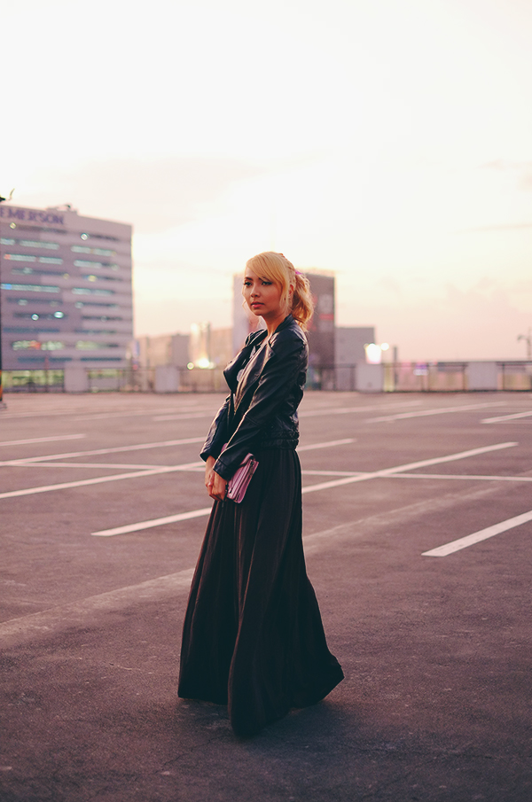 this rooftop has been a favorite of mine for years. i go here often for outfit photos, but in truth i mostly enjoy it for what it is: a vast space of quiet isolation. unassuming in appearance, it offers not only solitude but also breathtaking light at the end of the day — perfect for that magical glow photographers (and style bloggers!) like to chase after. i was saddened to find a new structure being constructed on the far side of the lot, especially since it blocks most of the sun’s warm cast during golden hour…but i’ll take what i can get. i just hope they never decide to completely block off the building’s sides or i will be truly devastated..