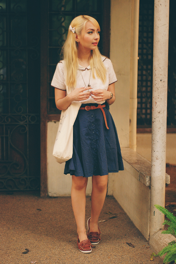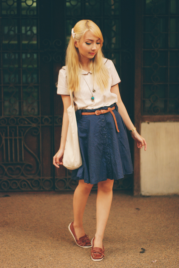 Where have you been? I kind of miss seeing you around my bloglovin’ feed! Btw, I adore the vintage vibe going on in this outfit but you seem to dress it down with those loafers and tote bag 😉